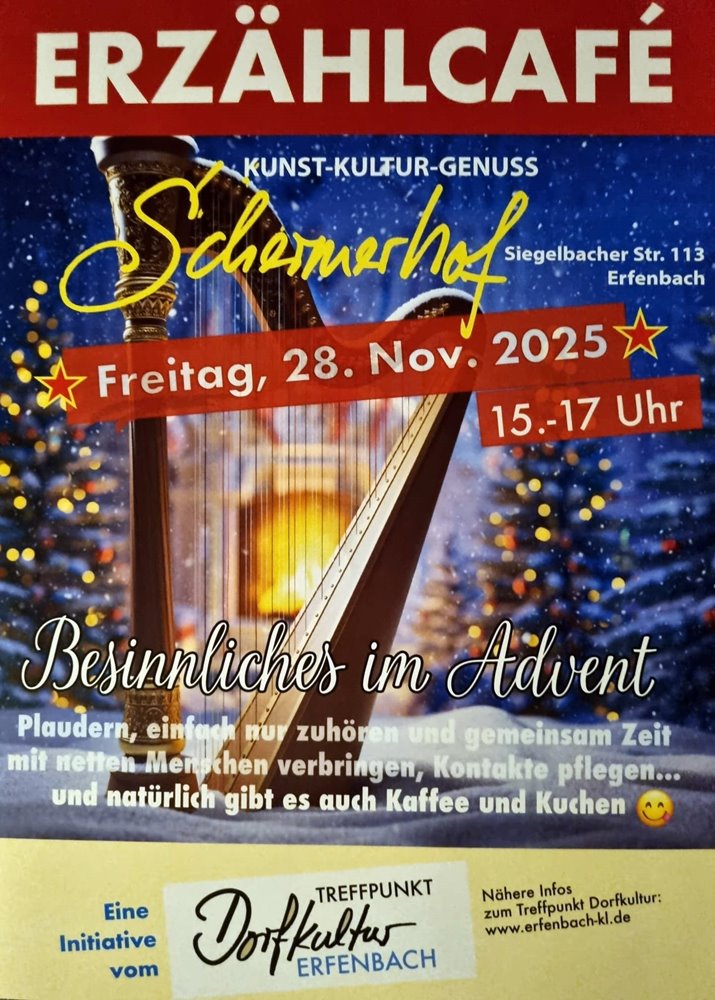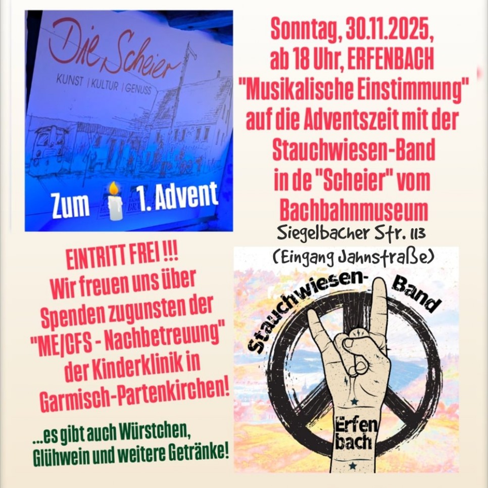 An dieser Stelle biete ich die Möglichkeit Ankündigungen für aktuelle Veranstaltungen, Termine usw., die Erfenbach betreffen, hier zu präsentieren. Wenn Sie möchten, setzen sie sich bitte mit mir wegen eines Eintrags in Verbindung.